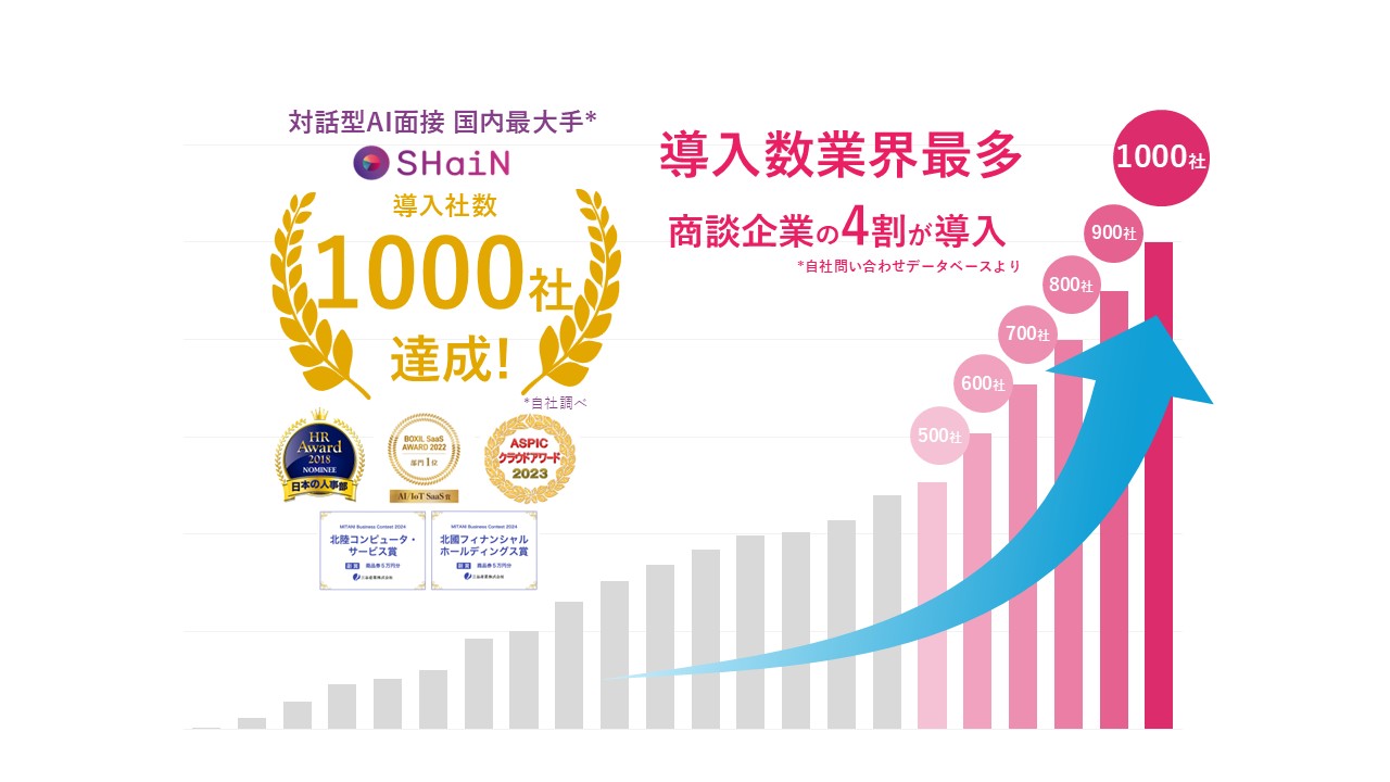 【プレスリリース】次世代版対話型 AI ⾯接サービス SHaiN 1000社達成〜問い合わせ商談企業の4割以上が導入決定〜
